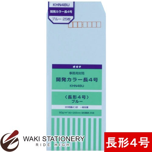 オキナ 開発カラー封筒 長形4号 25枚入 ブルー KHN4BU [KHN4] / 10セット 【文房具なら和気文具】