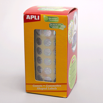 当店は3000円以上で送料無料!スペインのステーショナリーブランド・輸入雑貨【APLI(アプリ)】キラキラ○丸型ラベル 80片 グリッター(AP-11628)【文具/事務用品/デコレーション/シール/雑貨】