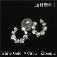 【送料無料】 キラキラ輝く幸運モチーフ☆スーパーキュービックジルコニア 馬蹄 ピアス (両耳用1ペア) K10 ホワイトゴールド 【楽ギフ_包装選択】【楽ギフ_メッセ入力】【激安 格安 ジュエリー】【結婚記念日 誕生日プレゼント ギフト レディース 女性 人気】【RCP】【母の日】