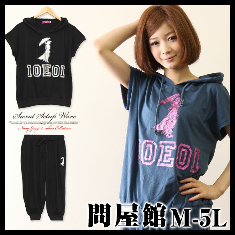 .ft_tool1 {background-image: url(http://image.rakuten.co.jp/ladies-tonya/cabinet/16/ft_tool_l_m.gif);background-repeat: repeat-y;padding-left: 24px;}.ft_tool2 a {background-image: url(http://image.rakuten.co.jp/ladies-tonya/cabinet/16/ft_tool_l2.jpg);background-repeat: no-repeat;height: 96px;width: 173px;display: block;text-indent: -9999px;}.ft_tool2 a:hover {background-image: url(http://image.rakuten.co.jp/ladies-tonya/cabinet/16/ft_tool_l2_2.jpg);background-repeat: no-repeat;height: 96px;width: 173px;display: block;text-indent: -9999px;}.ft_tool3 a {background-image: url(http://image.rakuten.co.jp/ladies-tonya/cabinet/16/ft_tool_l3.jpg);background-repeat: no-repeat;height: 97px;width: 173px;display: block;text-indent: -9999px;}.ft_tool3 a:hover {background-image: url(http://image.rakuten.co.jp/ladies-tonya/cabinet/16/ft_tool_l3_2.jpg);background-repeat: no-repeat;height: 97px;width: 173px;display: block;text-indent: -9999px;}店舗概要 問屋館 大きいサイズ専門店 は、大きめサイズ おおきめ おおきい可愛い洋服の 通販 オンラインショップ です。 大きなサイズ おおきなサイズ 大きめ サイズ ビッグサイズ Bigsize size ラージサイズ largesize アメリカサイズ American 女性服 女性用 女性物 婦人物 婦人服 婦人用 アパレル レディースファッション ゆったりサイズ 着痩せ効果 着やせ効果 綿 コットン シフォン 10代 20代 30代 40代 50代 の品揃いがあります。 森ガール レトロな服 ギャル服 や ギャル系 ミセス まで お勧め を幅広く、取扱っています。 即納 で 送料無料 や 送料160円メール便発送可能な商品がたくさんございます。 感激の 新作 新着 格安 激安 アイテム から 上品セレブな豪華 高級 ブランド brand 多数 プレゼント 用や自分用に 是非いろいろな商品をご覧下さいませ。 当店取扱いサイズ Sサイズ Mサイズ Lサイズ LLサイズ 2Lサイズ 3Lサイズ 4Lサイズ 5Lサイズ 6Lサイズ フリーサイズ 7号 9号 11号 13号 15号 17号 19号 XL XXL XXXL XXXXL 2XL 3XL 4XL 当店取扱いカラー 黒 白 赤 青 緑 紺 桃 橙 灰色 黄色 杏色 珈琲 茶 ブラック ホワイト レッド ブルー グリーン ネイビー ピンク オレンジ グレー イエロー ベージュ クリーム カーキ コーヒー ブラウン BLACK WHITE RED BLUE GREEN NAVY PINK ORANGE YELLOW BEIGE CREAM KHAKI COFFEE BROWN.item_name{ margin:0px; padding:0px; display: block; width: 440px; height: 26px; height: 26px\9; /*ie*/overflow: hidden; overflow-y: hidden; overflow-x: hidden; }.catch_copy{ margin:0px; padding:0px; display: block; width: 440px; height: 20px; height: 20px\1; /*ie*/overflow: hidden; overflow-y: hidden; overflow-x: hidden; }フレンチスリーブのパーカーとクロップドパンツのセットアップ。パーカーはロゴ入りでその上にはたくさんのスワロフスキーが散りばめられています。ルームウェアやスポーツシーンで大活躍です。フレンチスリーブのパーカーとクロップドパンツのセットアップ。パーカーはロゴ入りでその上にはたくさんのスワロフスキーが散りばめられています。ルームウェアやスポーツシーンで大活躍です。サイズXL(LL),XXL(3L),XXXL(4L),XXXXL(5L)実寸(cm)トップス2L…バスト102 裾幅90 ウエスト100,3L…バスト110 裾幅98 ウエスト108,4L…バスト116 裾幅104 ウエスト114,5L…バスト124 裾幅112 ウエスト122,パンツ2L…総丈75 ウェスト72 ヒップ108 腿幅60,3L…総丈76 ウェスト80 ヒップ116 腿幅64,4L…総丈77 ウェスト88 ヒップ124 腿幅68,5L…総丈78 ウェスト96 ヒップ132 腿幅72素材綿100%備考こちらメール便不可です。ご注意パソコン環境によっては実際のお色と多少異なる場合がございますが、ご了承くださいませ。