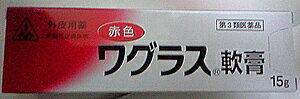 漢方成分がよく効く軟膏剤。古くて新しいホノミ漢方の軟膏剤。【効能・効果】くさ、急性・慢性湿疹、おむつかぶれ、しもやけ、股ずれ、かみそり負け、火傷、凍傷、ひび、あかぎれ、外傷、あせも、ただれ、くつずれ【用法・用量】1日1〜3回患部に塗布して下さい。※滲出物の多い時はガーゼに厚く塗り局部に貼付してください。【!用法・用量に関連する注意!】(1)用法・用量を厳守すること(2)小児に使用させる場合には、保護者の指導監督のもとに使用させること(3)外用のみに使用すること。(4)目に入らないように注意すること。(5)患部を清潔にしてから使用すること【成分・分量】(本剤2250g中)チコニイル(ゴマ油673.3g、ゴマ油、シコン、トウキのゴマ油抽出エキス572.2g)1245.5gミツロウ1004.5g【剤型】軟膏本剤は赤色で、特異なにおいを有する軟膏です。【!使用上の注意!】1,次の人は使用前に医師又は薬剤師に相談すること(1)医師の治療を受けている人(2)本人又は家族がアレルギー体質の人(3)薬によりアレルギー症状を起こしたことがある人(4)湿疹、ただれ、やけど、外傷のひどい人(5)傷口が化膿している人(6)患部が広範囲の人2,次の場合は直ちに使用を中止し、商品添付文書を持って医師又は薬剤師に相談すること。(1)使用後、次の症状があらわれた場合関係部位:症状皮 膚:発疹・発赤、かゆみ、3,他の医薬品などを併用する場合には、含有成分の重複に注意する必要があるので、医師又は薬剤師に相談すること【!保管及び取り扱い上の注意!】(1)直射日光の当たらない涼しい所に密栓して保管すること。(40℃以上の高温の場所を避けること。晴天の日は自動車内が高温になるので、放置しないこと。)(2)小児の手の届かない所に保管すること。(3)他の容器に入れ替えないこと。(誤用の原因になったり品質が変わる。)区分:第3類医薬品文責:登録販売者 松田誠司関連商品はこちら効果の秘密は赤い色傷の回復促進に潤いのない皮膚病に赤色ワグラス軟膏DHA・EPA配合の非ステロイド軟膏ダイアフラジン軟膏ダイアフラジンA軟膏ご相談下さい代謝を促進細胞賦活用薬ルミンA-100γ【医薬品】■ 関連商品 剤盛堂薬品・ホノミ漢方お取り扱い商品副鼻腔炎・蓄膿・臭い鼻づまりにホノミビスキン【化膿した皮膚に】黄色ワグラス軟膏Sシリーズ【傷の回復促進・乾燥肌に】赤色ワグラス軟膏シリーズ人気の漢方抗生剤【できもの、中耳炎に】飲むワグラスD錠シリーズ漢方抗生剤【じゅくじゅく、ただれに】飲むワグラスW錠シリーズ【体力がある人の血行障害。しもやけ、いぼ痔、にきびに】飲むワグラスB錠シリーズ赤色ワグラス軟膏は、ひび、あかぎれ、かみそり負け等の創傷性の皮膚疾患や 血行障害により起こるしもやけ、凍傷などさらには、やけどを改善するよう考え出された外用の軟膏剤(塗り薬)です。赤色ワグラス軟膏中のシコンはトウキとともに肉芽形成 (新しい皮膚を形成する)作用により傷口の治りを早めます。 また、赤色ワグラス軟膏のトウキ・シコンの成分を引き出すゴマ油は乾燥している皮膚にも良くなじみ、患部に潤いを保つように働きます。