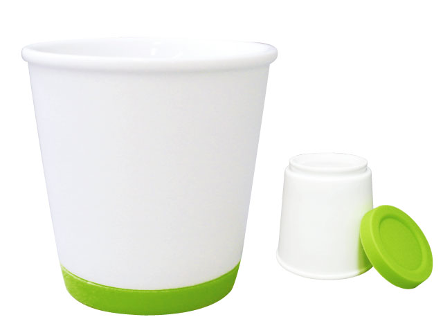 シリコンのコースター付きで安定感があり、机などを傷つける心配もありません!コースターは取り外し可能。プリンなどのデザートカップとしても◎話題のシリコン雑貨/食器陶器製カップと取り外し可能なシリコンコースターのセット♪全4色シリコンコースター付きカップ