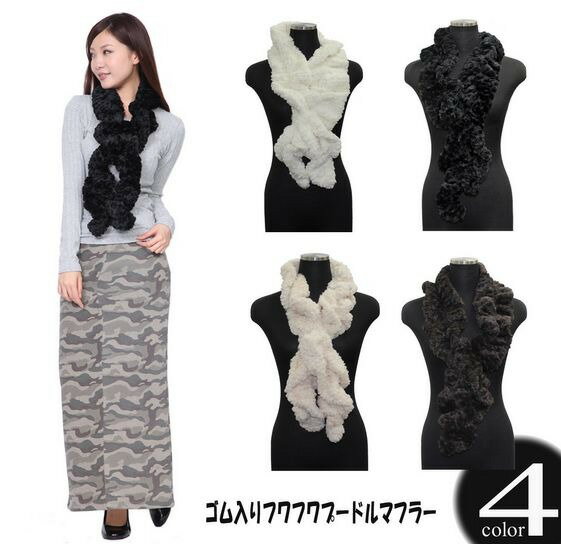 バッグ・小物・ブランド雑貨 服飾小物(帽子・ネクタイ・ベルト等) マフラー 女性用 その他 - ブラック ホワイト アイボリー ダークグレー ゴム入りフワフワプードルマフラー【定形外送料無料】ゴム入りフワフワプードルマフラー・かわいい・レディース・ループ・ストール・防寒・ふわもこ【0830】◎本日注文3月10日頃出荷予定