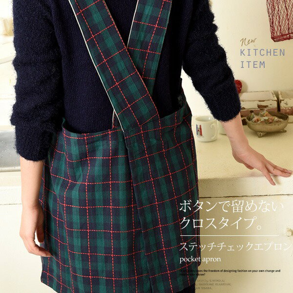 キッチン・日用品雑貨・文具 キッチン用品・雑貨・エプロン エプロン その他 F ネイビー ブラウン アイボリー サッとかぶるだけ チェック エプロン チェック柄・ふきんベルト【メール便送料無料】【一部即納】サッとかぶるだけ チェック エプロン チェック柄・ふきんベルト付き ステッチチェック 簡単装着 綿 F ネイビー ブラウン アイボリー 学校 園行事【0090】◎本日注文3月5日頃出荷予定
